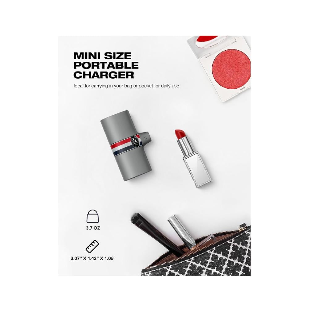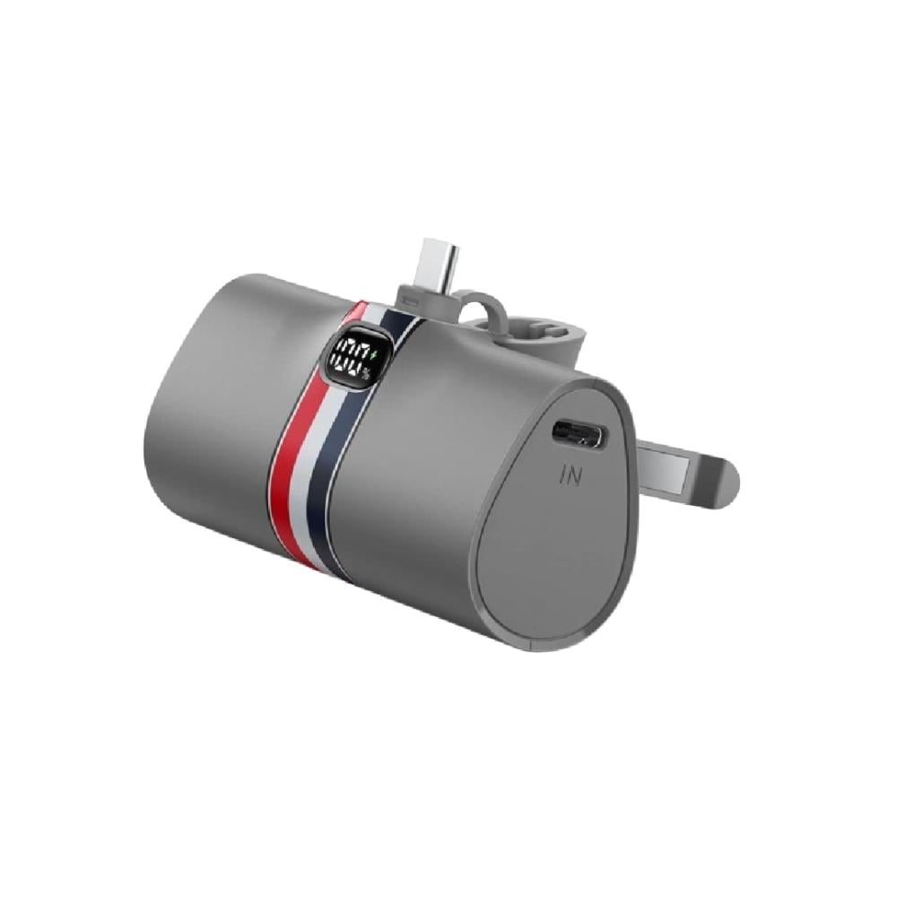 باور بانك - بطارية متنقلة صغيرة بمنفذ USB C لون رمادي