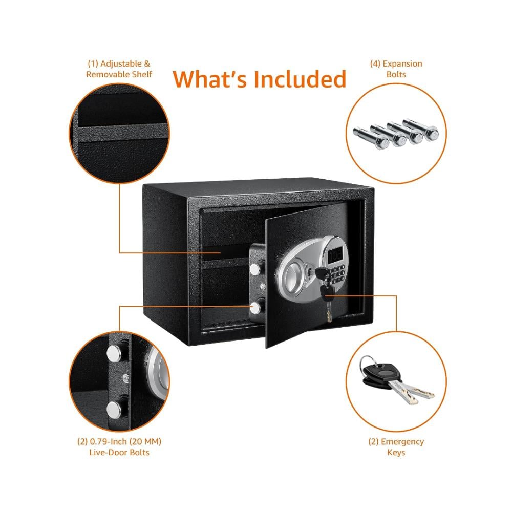 - خزنة أمان مصنوعة من الستيل مع لوحة مفاتيح إلكترونية وقفل بصندوق قابلة للبرمجة- آمنة للنقود والمجوهرات ووثائق الهوية