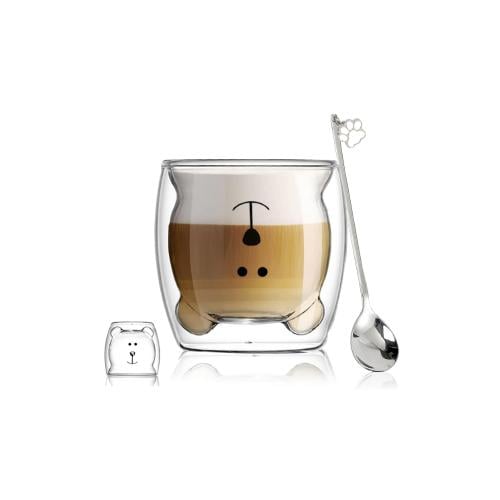 - كوب زجاجي معزول بجدار مزدوج يتميز بتصميم ظريف لدب