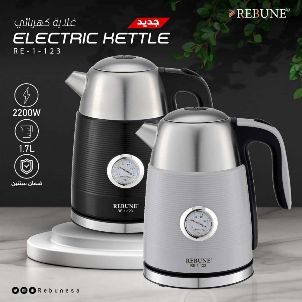 ريبون - غلاية كهربائية 1.7 لتر 2200 واط إضاءة ال إي دي RE-1-123 - اسود