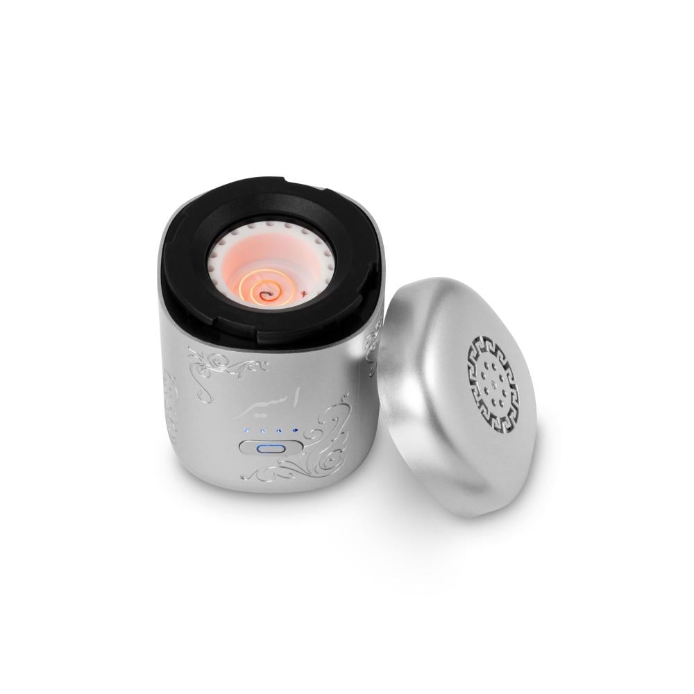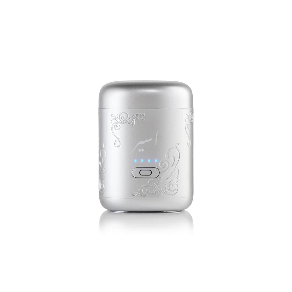 اسير - مبخرة الكترونية متنقلة بتصميم انيق مناسبة لانواع البخور والمعمول - فضي