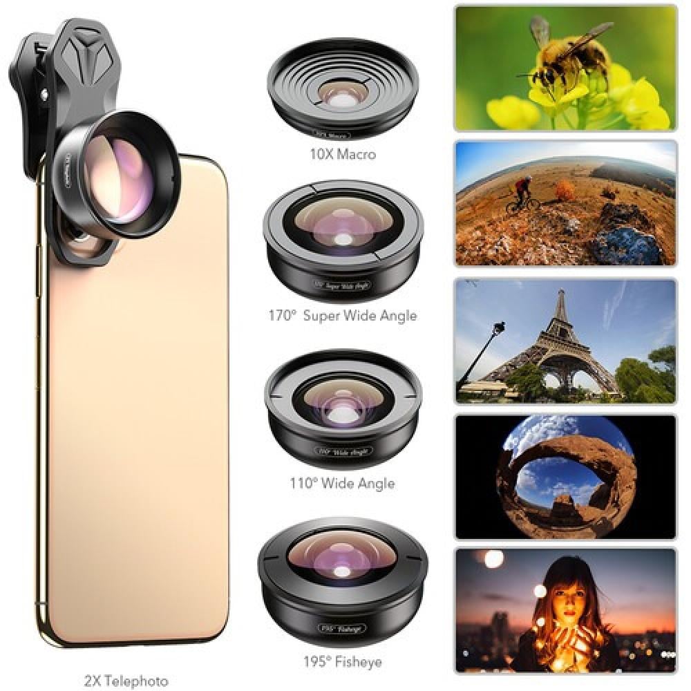 ارتقِ بتجربة التصوير من هاتفك مع مجموعة عدسات Apexel 4K الاحترافية – 5 في 1.