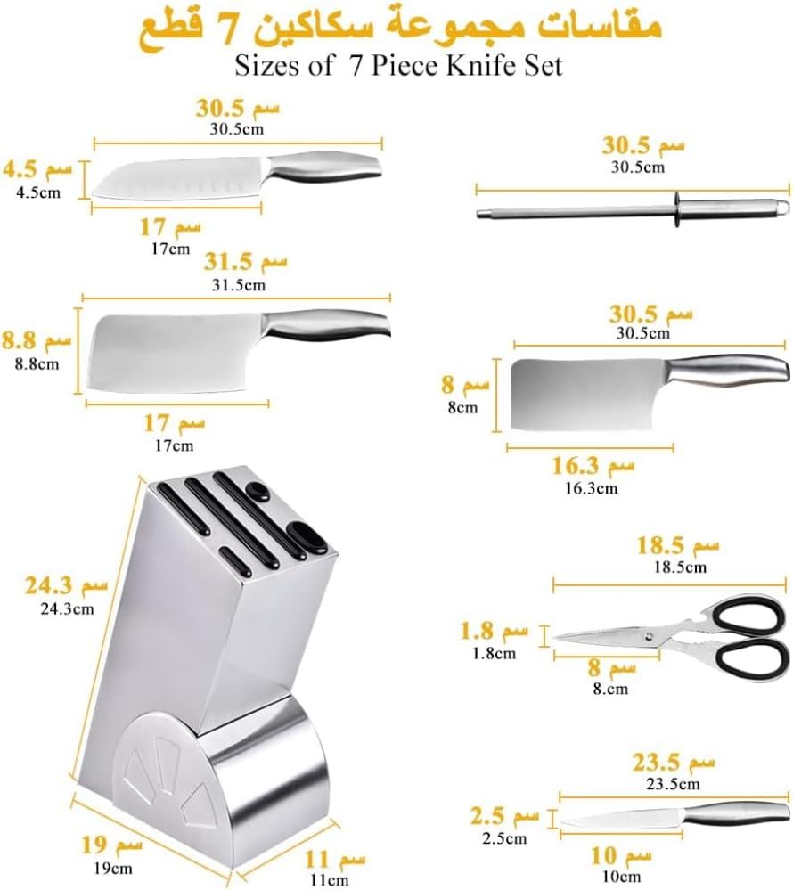مجموعة سكاكين مطبخوصف المنتج :مجموعة سكاكين - تتضمن هذه المجموعة المكونة المطبخ قطاعة عظام وقطاعة وسكين شيف وسكين فاكهة ومقص مطبخ وسكين متعدد الأغراض ...