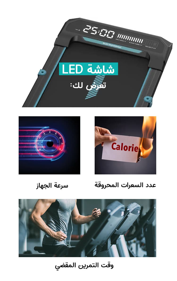 - توفر شاشة عرض إلكترونية تعرض معلومات مثل الوقت، السرعة، عدد السعرات الحرارية المحروقة.