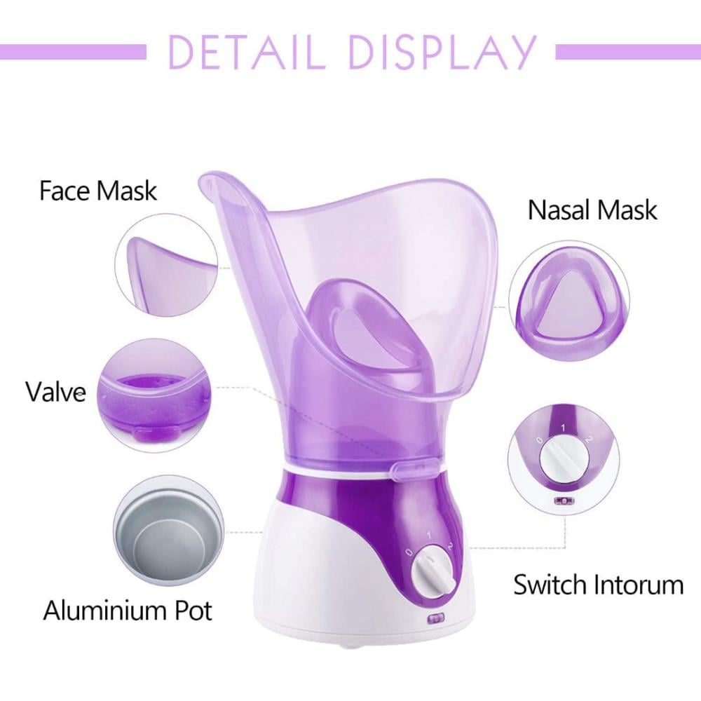 - علاج احترافية للوجه - لا يساعد جهاز بخار الوجه بإضافة الرطوبة وفتح مسام البشرة لاختراق أفضل فحسب، بل إنه يعزز الدورة الدموية ويزيد مرونة البشرة. ينظف رذاذ جهاز بخار الوجه البشرة وينقيها طبيعيًا، كما يساعد في تقليل حب الشباب والرؤوس السوداء.