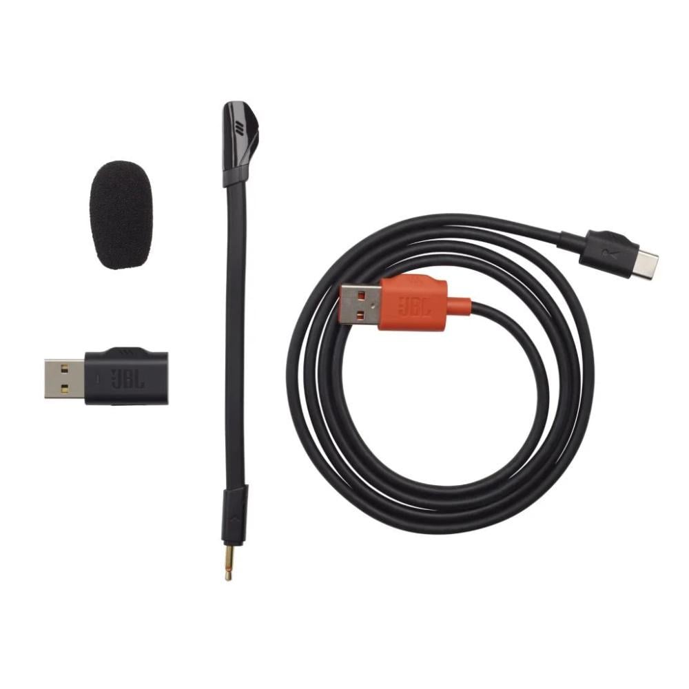 - عمر البطارية الذي يصل إلى 22 ساعة يعني صوتًا رائعًا من JBL حتى أثناء جلسات اللعب الأطول. هل ما زلت بحاجة إلى وقت إضافي؟ خمس دقائق تمنحك ساعة إضافية من وقت التشغيل، ويمكنك الشحن أثناء اللعب باستخدام كابل الشحن USB.