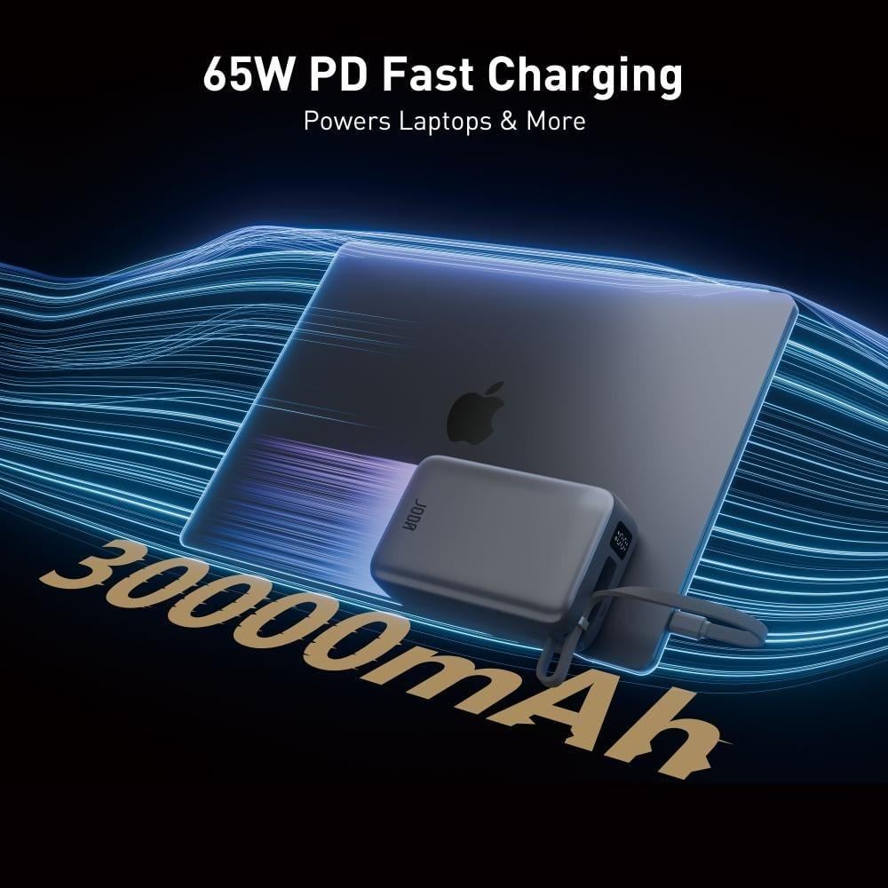 جودا - بطارية متنقلة تشارج بقوة 65 واط بسعة 30000 ملي امبير بمنفذ تايب سي ومنفذ يو اس بي مع سلك تايب سي مدمج