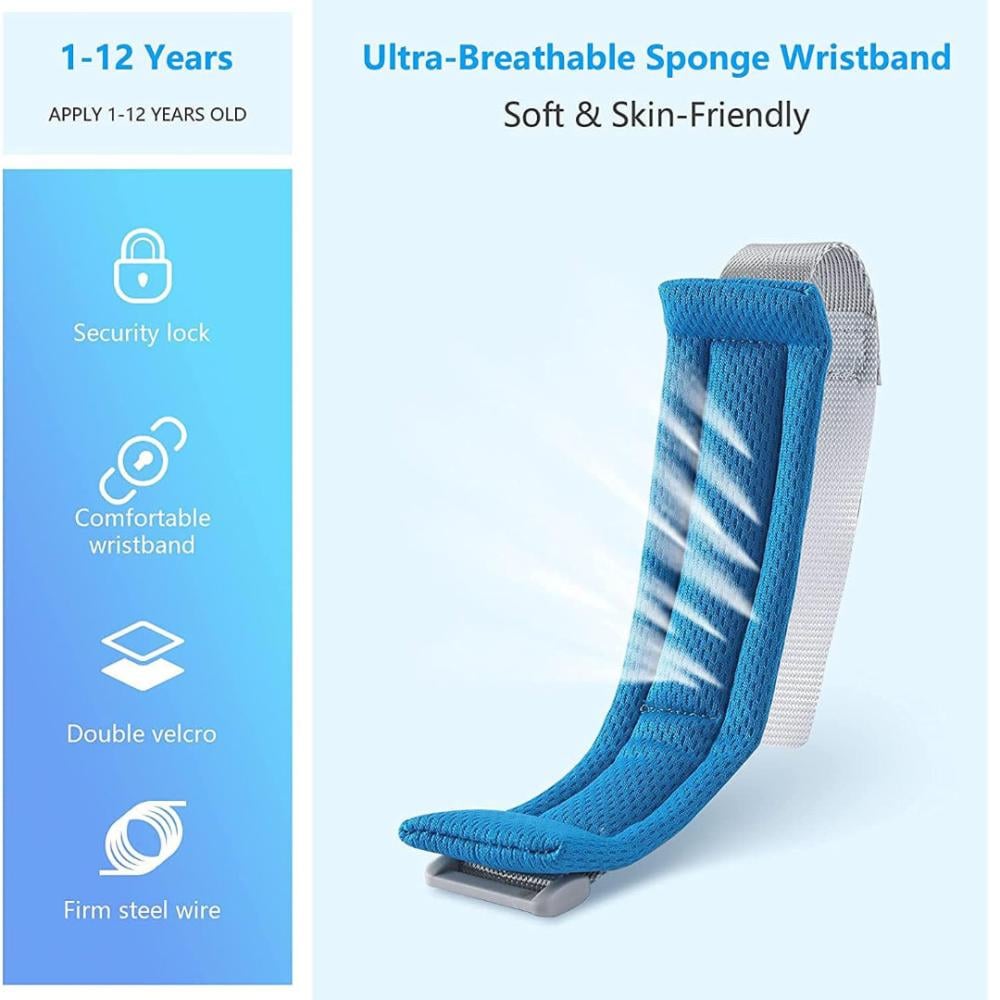 - رباط معصم ناعم ومريح - يمنع الاحتكاك غير المريح والتعرق ويحمي حزام الأطفال من الخدش والعرق. يتم استخدام حزام الأطفال القابل للتعديل والمزود ببطانة إسفنجية فائقة النعومة ومريحة وجيدة التهوية على رابط المعصم المضاد للضياع