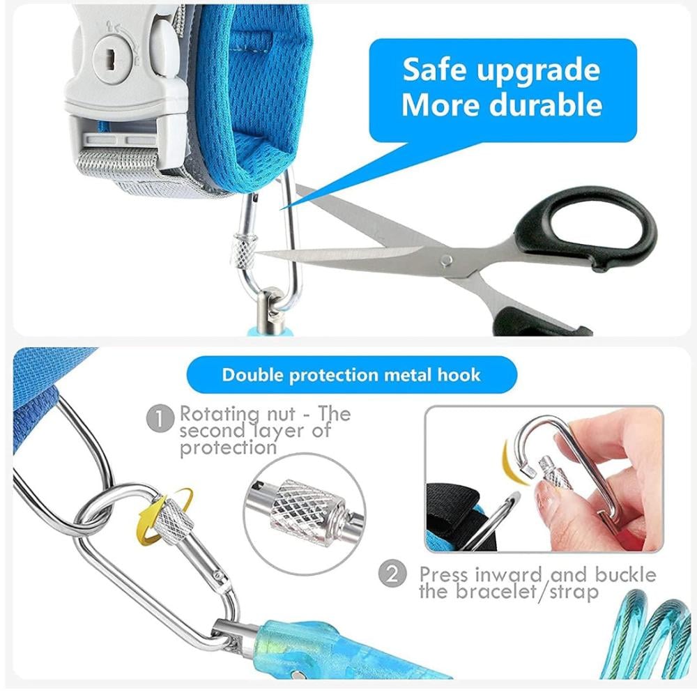 - تصميم قفل آمن - استخدم المفاتيح المرفقة لقفل وفتح رابط المعصم المضاد للضياع وفقًا لتفضيلاتك. لا يمكن للأطفال سحبه أو خلعه. يمكن لأقفال الأطفال منع بعض المشاكل الناجمة عن الفتح الذاتي من قِبل الأطفال في الأماكن المزدحمة