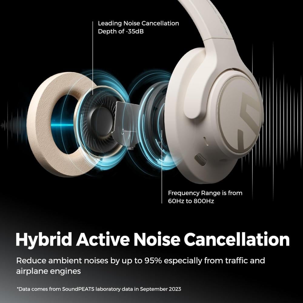 ساوندبيتس سماعات رأس بلوتوث 5.3 متعددة النقاط بخاصية إلغاء الضوضاء لون بيج