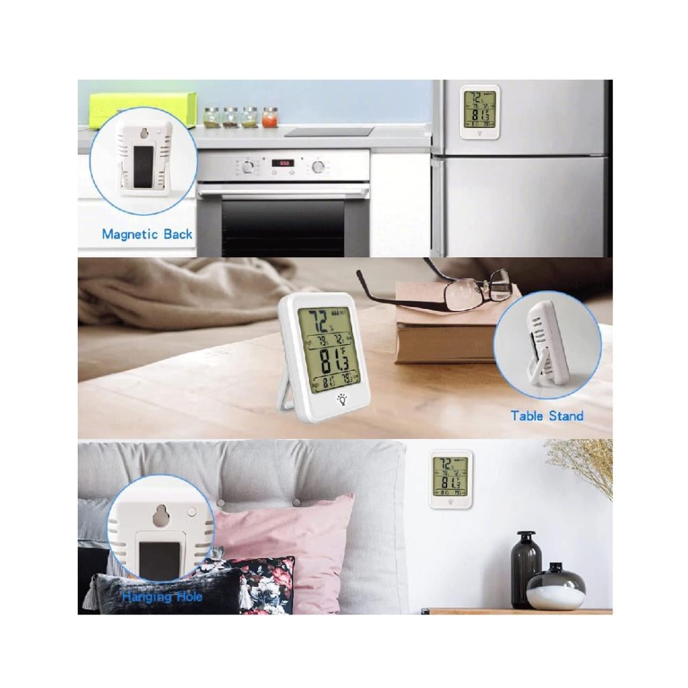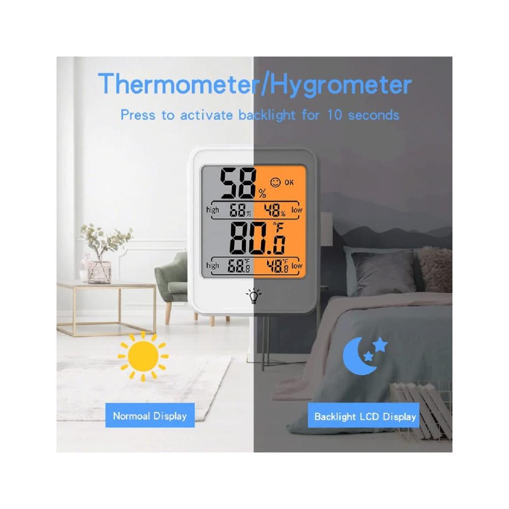 - شاشة LCD سهلة القراءة: مقياس حرارة ورطوبة صغير للأماكن المغلقة مجهز بشاشة عرض رقمية واضحة وصغيرة، حتى عند عرض القراءات من زوايا مختلفة لمسافة طويلة.