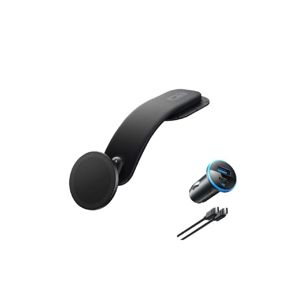 انكر - حامل جوال مغناطيسي للسيارة وشاحن سيارة بمنفذين مع كيبل تايب سي - اسود