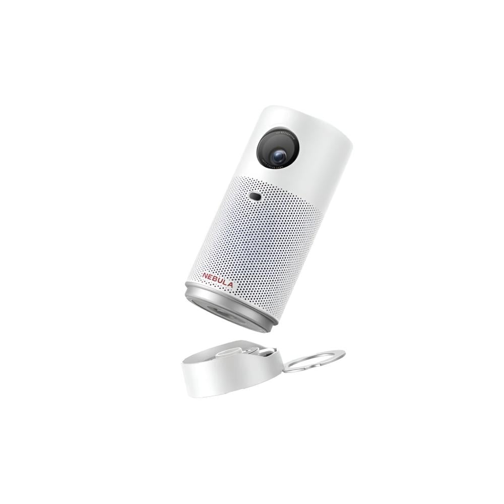 بروجكتر Anker Nebula Capsule Air المحمول باللون الأبيض – خيار مثالي لعشاق الترفيه العصري. يجمع بين الحجم الصغير، التصميم الأنيق، ونظام Google TV المدمج، ليمنحك تجربة مشاهدة مرنة وغامرة في أي مكان، سواء في البيت أو أثناء التنقل.