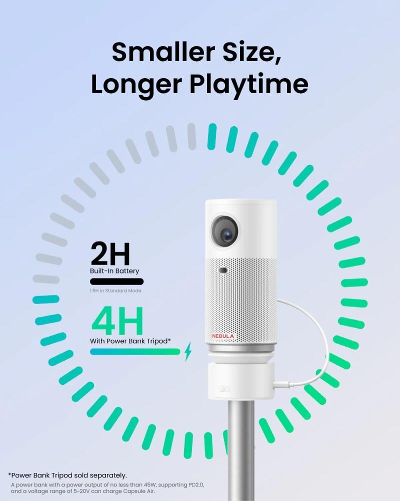 لأنه يجمع بين التقنية الذكية والتصميم العملي. مع بروجكتر Nebula Capsule Air تقدر تتابع أفلامك ومسلسلاتك على أي جدار أو مساحة فارغة، وتشغل التطبيقات مباشرة من Google TV بدون أجهزة إضافية. مثالي للرحلات، التجمعات العائلية، أو حتى جلسات العمل.