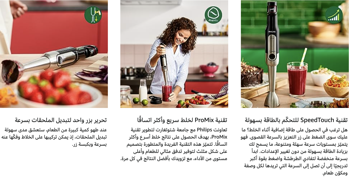وصف المنتجخلاط بروميكس اليدوي بطاقة 800 واطتقنية سبيد تاتش مع توجيه السرعةجسم من الستانلس ستيل.مع خفاقة وكوب للاستخدام عند الخروج وفرامة للتقطيع بحجم ...