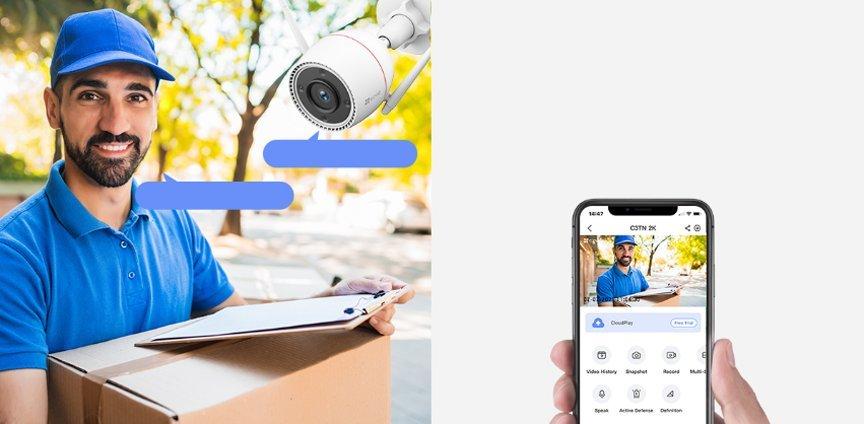 باستخدام تطبيق EZVIZ، يمكنك بسهولة الترحيب بزوارك، أو التحدث إلى سعاة البريد، أو تحذير أي متسلل غير مرغوب فيه بسهولة في أي وقت - حتى لو كنت بعيدًا عن المنزل.