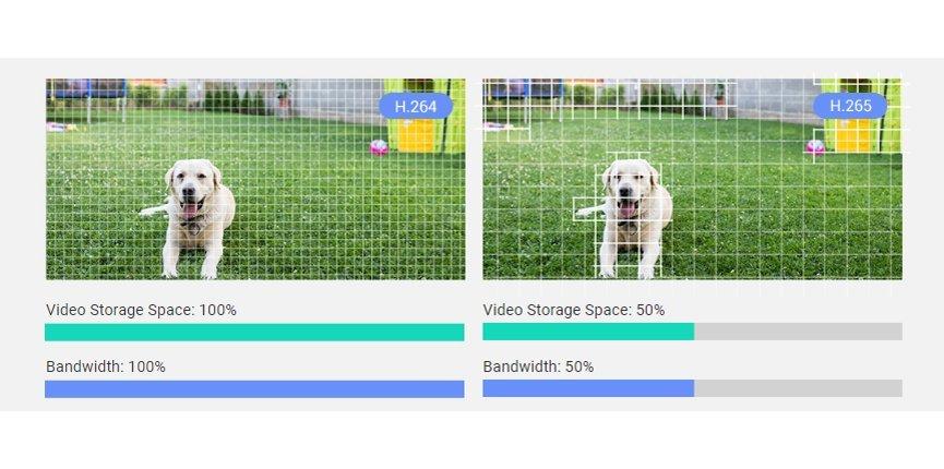 بفضل تقنية ضغط الفيديو H.265 المتقدمة، تحقق الكاميرا جودة الفيديو نفسها أو أفضل باستخدام نصف عرض النطاق الترددي ونصف مساحة التخزين المطلوبين لمعيار ضغط الفيديو السابق H.264*.