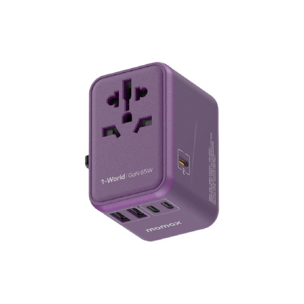 موماكس - فيش السفر بتقنية الشحن السريع GaN PD بـ5 منافذ وبقوة 65 واط UA8D - بنفسجي