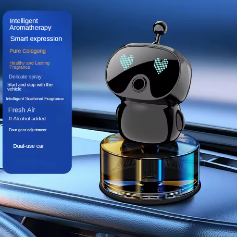 - تصميم عصري وجذاب: شكل روبوت لطيف بعيون LED تعبّر عن الحالة، يضيف لمسة من الحيوية داخل السيارة.