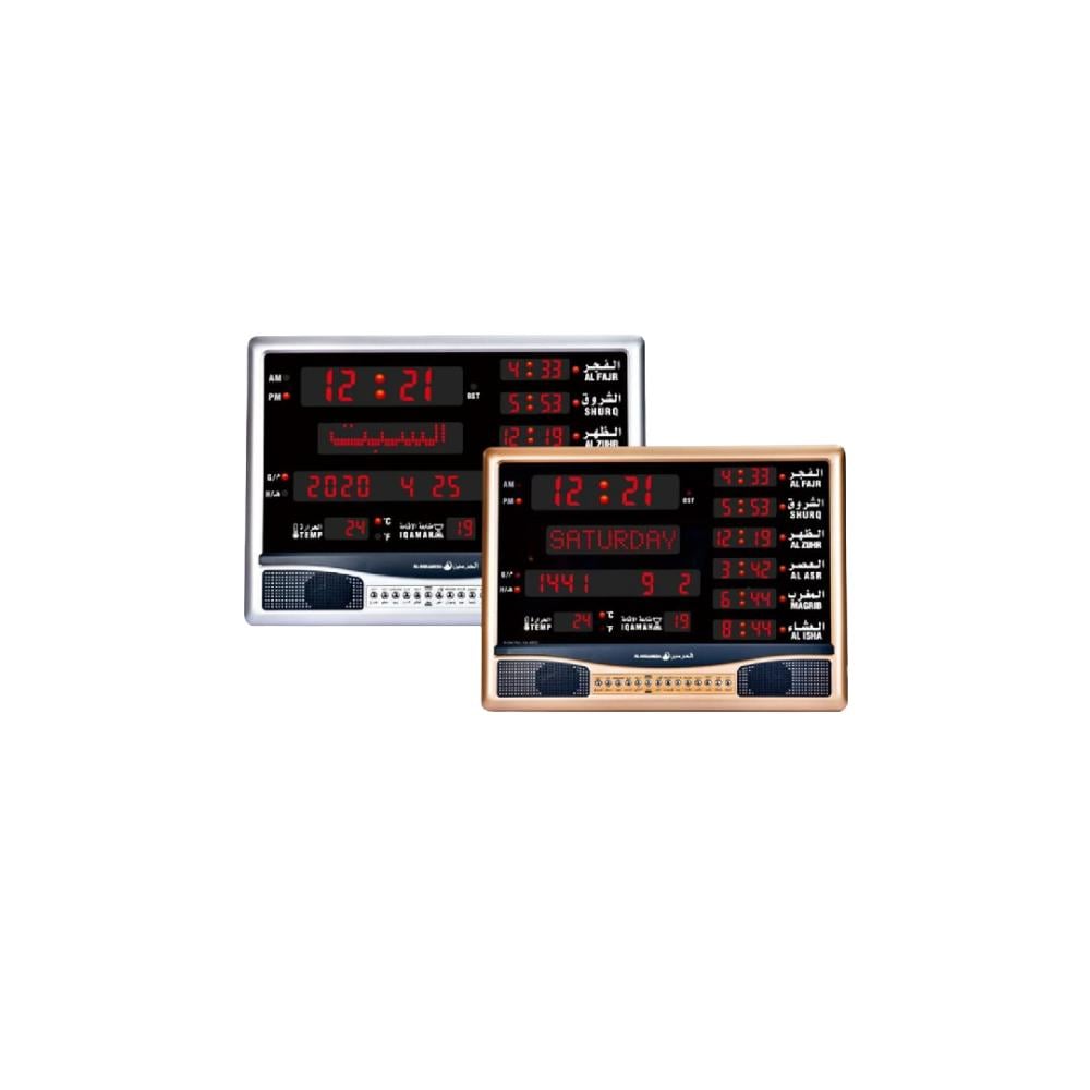 الحرمين - ساعة جدارية و مكتبية HA-4005 اذان بأصوات متعددة AZAN CLOCK مع ريمود كنترول مقاس 27×37 cm متعدد الالوان