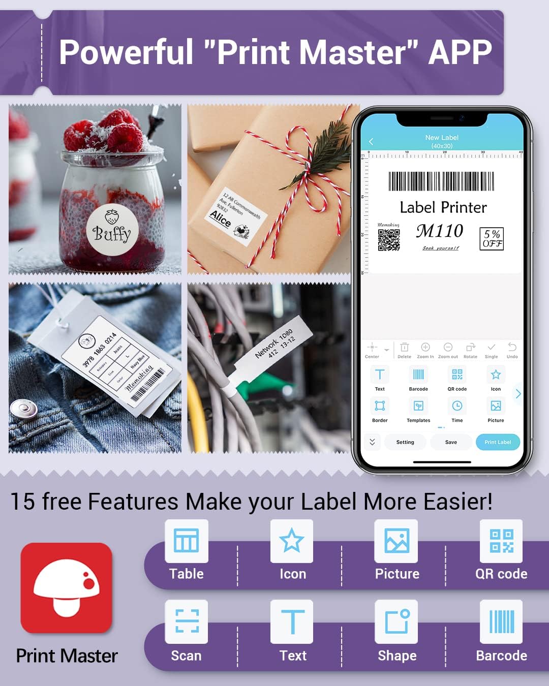البطارية: بطارية ليثيوم 1200mAh (مدمجة)، يمكنها طباعة 4 لفات من الورق بشكل مستمر.