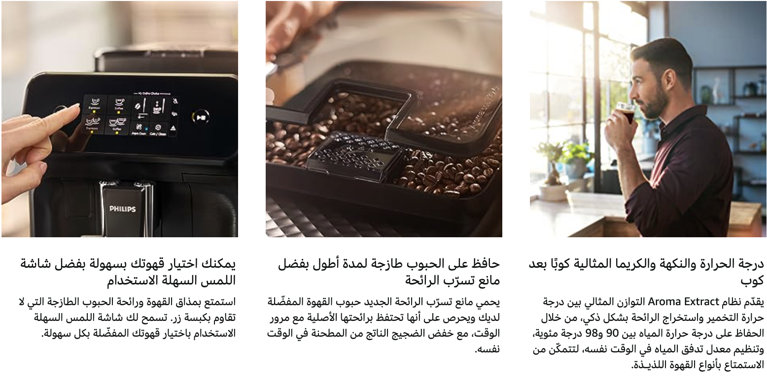 وصف المنتجماكينة تحضير القهوة الاتوماتيكية بالكامل من فيليبس بتقنية لاتيه جو، مشروبانتفاصيل المنتجالعلامة التجارية - فيليبساللون - أسود، أسود لامعأب...