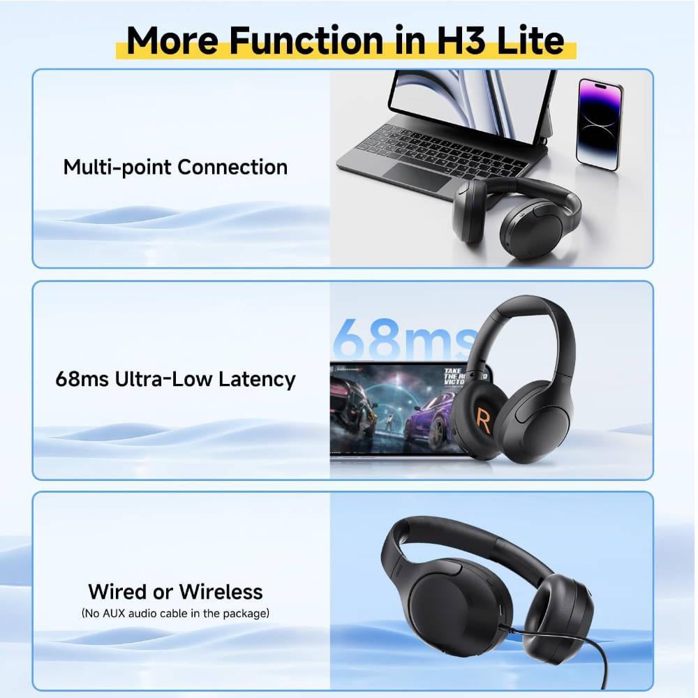 - صوت متوازن جيدًا - مصنوعة من مكبرات صوت مطلية بالتيتانيوم 40 ملم، توفر سماعات الرأس اتش 3 لايت تجارب صوتية غامرة. صوت منخفض التردد عميق وقوي، قريب من التأثيرات في الموقع؛ صوت عالي التردد ساطع وواضح.