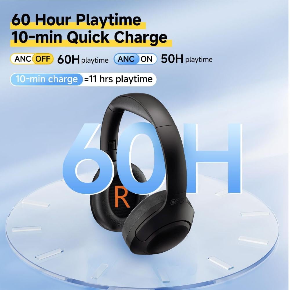 - وقت تشغيل 60 ساعة - توفر سماعات الرأس بلوتوث QCY H3 LITE أكثر من 60 ساعة من وقت التشغيل في وضع إيقاف تشغيل إلغاء الضوضاء النشطة. أثناء التنقل، يوفر الشحن السريع لمدة 10 دقائق 11 ساعة من التشغيل، ويأتي مع كابل صوت 3.5 ملم للتبديل إلى الوضع السلكي في أي وقت، لذلك لا داعي للقلق بشأن نفاد البطارية.