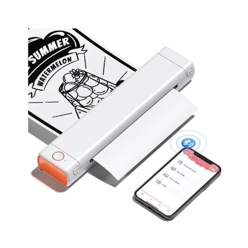 - سعة بطارية كبيرة - الطابعة لاسلكية محمولة ببطارية مدمجة قابلة لإعادة الشحن بسعة 1200 mAh. يمكن طباعة 120 ورقة من الورق الحراري ايه 4 بشكل متواصل