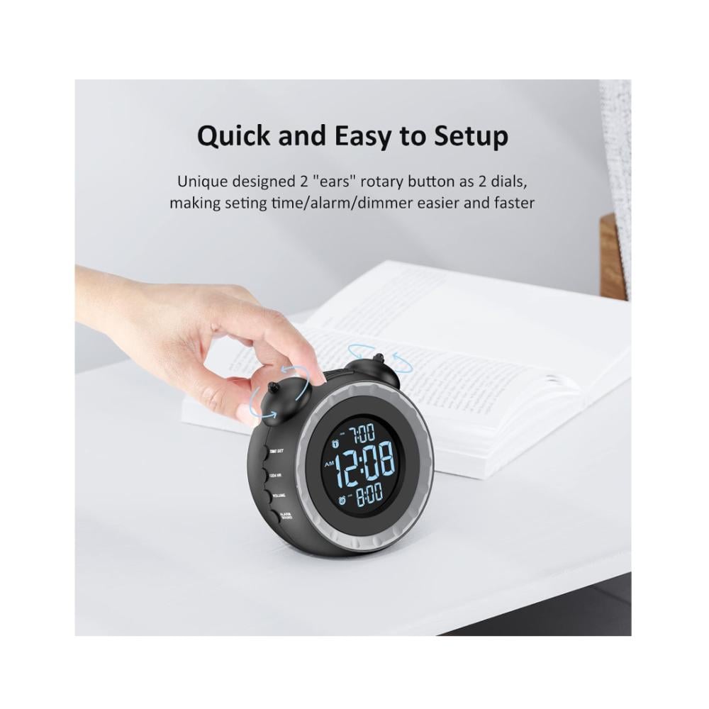 - سهل الإعداد - يعد تدوير "الأذنين" لضبط الوقت والتنبيه أمرًا بديهيًا ومباشرًا للغاية. مع تمييز جميع الأزرار بوضوح وعدم وجود وظيفتين تقريبًا تشتركان في نفس الزر، فمن السهل للغاية استخدامها فور إخراج الجهاز من الصندوق وتغيير الإعدادات.